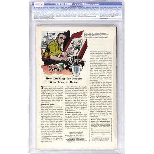 48C. COMICS – Comic books sold referencing a third-party grading service are sold "as is" without any express or implied warranty. Certain warranties may be available from the grading services and the Bidder is referred to them for further details: Comics Guaranty Corporation (CGC), P.O. Box 4738, Sarasota, FL 34230. Subject to sections 57 and 58, bidders who intend to challenge authenticity or provenance of a lot must notify Auctioneer in writing within thirty (30) days of the Auction's conclusion. Auctioneer's maximum liability shall not exceed the high bid on that lot, which bid shall be deemed for all purposes the value of the lot. In the event Auctioneer cannot deliver the lot or subsequently it is established that the lot lacks title, provenance, authenticity, or other transfer or condition issue is claimed, Auctioneer's liability shall be limited to recission of sale and refund of purchase price. After one year has elapsed, Auctioneer's maximum liability shall be limited to any commissions and fees Auctioneer earned on that lot.
