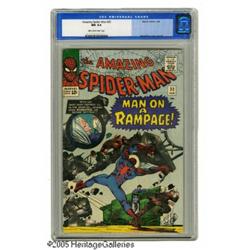<B>The Amazing Spider-Man #32 (Marvel, 1966) CGC NM 9.4 Off-white to white pages.</B></I> The Master Planner of the previous issue turns out to be a formidable foe indeed -- it's Doctor Octopus! Worse yet, he's just stolen the serum that's the only cure for the blood poisoning that has befallen Aunt May. To put it another way, <I>this</B></I> time it's personal. The cover and art are by Steve Ditko. Overstreet 2004 NM- 9.2 value = $330. CGC census 12/04: 10 in 9.4, 9 higher. <I>From the Northern Lights Collection.</B></I>