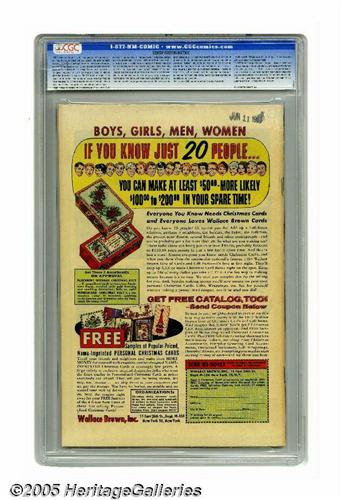 50. Auctioneer offers no opinion as to the validity of a grade assigned by any third-party grading service. Since we cannot examine C.G.A. encapsulated notes or Comics Guaranty Corporation (CGC) encapsulated comics, they are sold "as is" without our grading opinion, and may not be returned for any reason. Auctioneer shall not be liable for any patent or latent defect or controversy pertaining to or arising from any encapsulated collectible. In any such instance, purchaser's remedy, if any, shall be solely against the certification service certifying the collectible.
