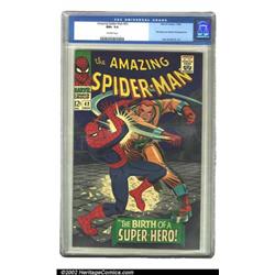 The Amazing Spider-Man #42 (Marvel, 1966) CGC NM+ 9.6 Off-white pages. This outstanding example from the Mile High 2 collection is far and away the nicest copy that we have ever seen. A Silver Age book simply cannot be any nicer than this one. The spine is absolutely perfect, the colors are electrifying and the corners should be registered as lethal weapons. If you want the very best, look no further...this is tied as the highest-graded copy certified by CGC. First full appearance of Mary Jane Watson. John Romita, Sr. art. Overstreet 2002 NM 9.4 value = $210. Important notice: We expect to be auctioning lots at the rate of 200-250 per hour. Sometimes eBay Premier live bid software cannot keep up with that pace, so we strongly recommend that you place a realistic proxy bid now as insurance to avoid disappointment. Also please note that all Heritage/CAA lots purchased through eBay Premier carry a 20% Buyer's Premium. Please make sure you read the Terms and Conditions.