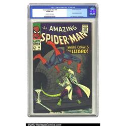 The Amazing Spider-Man #44 (Marvel, 1967) CGC VF/NM 9.0 Off-white to white pages. Everyone loves early Spider-Man books, and this one featuring the second appearance of the Lizard is no different. This particular copy has exceptional page quality and only minor edge wear. This is a beautiful book! John Romita, Sr. cover and art. Overstreet 2002 NM 9.4 value = $150. Important notice: We expect to be auctioning lots at the rate of 200-250 per hour. Sometimes eBay Premier live bid software cannot keep up with that pace, so we strongly recommend that you place a realistic proxy bid now as insurance to avoid disappointment. Also please note that all Heritage/CAA lots purchased through eBay Premier carry a 20% Buyer's Premium. Please make sure you read the Terms and Conditions.