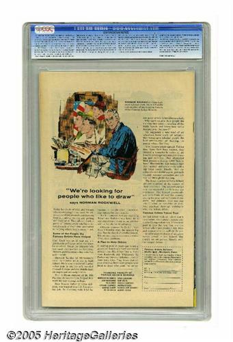 50. Auctioneer offers no opinion as to the validity of a grade assigned by any third-party grading service. Since we cannot examine C.G.A. encapsulated notes or Comics Guaranty Corporation (CGC) encapsulated comics, they are sold "as is" without our grading opinion, and may not be returned for any reason. Auctioneer shall not be liable for any patent or latent defect or controversy pertaining to or arising from any encapsulated collectible. In any such instance, purchaser's remedy, if any, shall be solely against the certification service certifying the collectible.