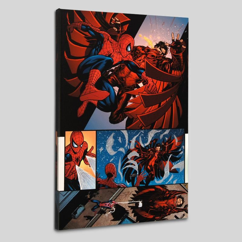 A piece of comic book history, this limited edition, from original art by Barry Kitson, depicts Spider-Man and Vulture. Barry Kitson got his start at Marvel UK by penciling Spider-Man, and now works on the Fantastic Four, Hulk, and Iron Man series. "The Amazing Spider-Man #594" is a limited edition numbered giclee on stretched canvas by Barry Kitson presented by Marvel Comics. This piece comes gallery wrapped. Includes Certificate of Authenticity! Measure approx. 18" x 27" (image); 1.5" (depth).