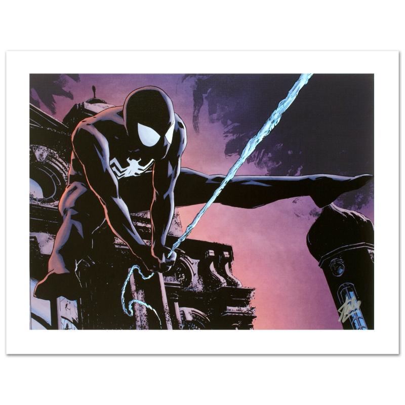 A piece of comic book history, this limited edition print, drawn by Mike Fyles, depicts the classic character Spider-Man. Mike Fyles, a British artist working in the fields of digital rendering and comic book art, has been interested in, and drawing comics since the 1970's. He has done a great deal of magazine cover work, as well as book illustrations. He is known primarily for his affinity for the nostalgic sci-fi aesthetic used heavily in his work. "The Amazing Spider-Man #637" is a limited edition giclee on canvas by Mike Fyles presented by Marvel Comics, numbered and hand signed by the great Stan Lee! Includes Certificate of Authenticity! Measures approx. 24" x 18" (image).