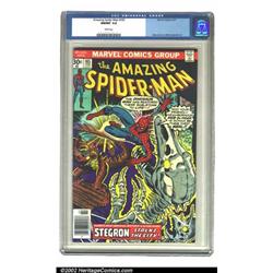 The Amazing Spider-Man Group, #153, #165, and #166 (Marvel, 1976) CGC NM/MT 9.8 Off-white to white pages. This lot consists of three Bronze Age Spider-Mans, all of which grade out at NM/MT 9.8. #165 has a jet black cover and very nice white pages. Each issue has art by Ross Andru and Mike Esposito. This is a great opportunity to fill several holes in your Spidey run. Overstreet 2002 NM 9.4 value for group = $42. 3 Co Comic Books Important notice: We expect to be auctioning lots at the rate of 200-250 per hour. Sometimes eBay Premier live bid software cannot keep up with that pace, so we strongly recommend that you place a realistic proxy bid now as insurance to avoid disappointment. Also please note that all Heritage/CAA lots purchased through eBay Premier carry a 20% Buyer's Premium. Please make sure you read the Terms and Conditions.