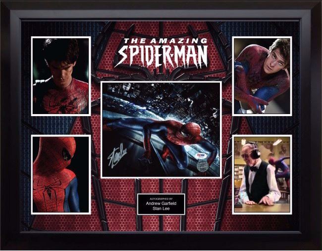 Custom framed The Amazing Spiderman Signed Photo Collage. Photo autographed by Andrew Garfield and Stan Lee. Approximate dimensions are 28x22 inches. This item is authenticated by PSA. This item comes with a Certificate of Authenticity from a third party authenticator. This Certification of Authenticity does not imply that the item will be certified by any other rival authentication companies. The accompanied certification is the only certification the auction company can confirm. These items are being sold as collectable pieces and there is no guarantee that this item can be resold on any online marketplace. Each of these companies has their own policies and politics.