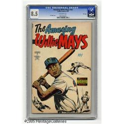 <B>The Amazing Willie Mays #nn File Copy Plus Bonus Memorabilia (Famous Funnies, 1954) CGC VF+ 8.5 Off-white pages.</B></I> In addition to this comic featuring the Say Hey Kid himself, this lot includes a letter from Famous Funnies with the salutation "Dear Mr. Sports Editor", which evidently accompanied a review copy of the comic. The letter includes the reminder that some comic publishers produce "wholesome, timely material of real merit," which as we know was not universally recognized in that <B>Seduction of the Innocent</B></I> era. Overstreet 2004 VF 8.0 value = $463; VF/NM 9.0 value = $694. CGC census 12/04: 2 in 8.5, 2 higher.