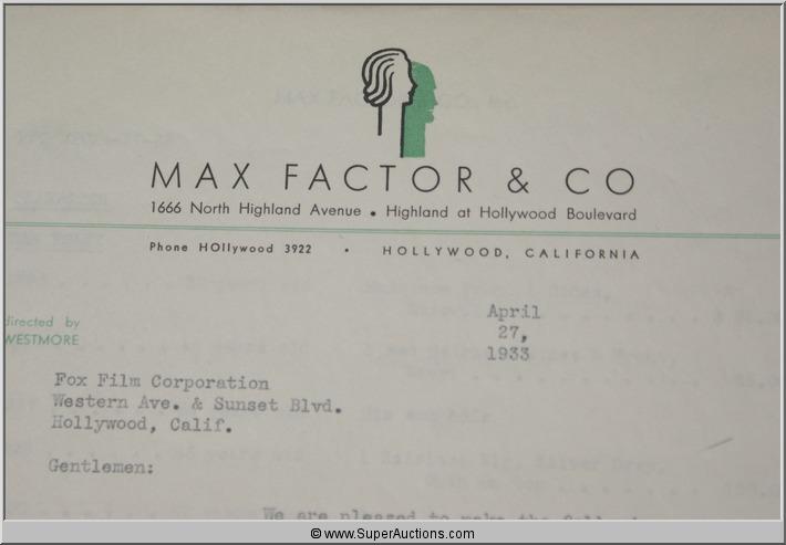"The American ~ Later Renamed The Man Who Dared" / Released June 30, 1933 / Fox Film Corporation / "An imaginative biography of Anton Cermak, mayor of Chicago who was killed in the line of fire during as assassination attempt on President-Elect Franklin D. Roosevelt in Miami on February 15, 1933" / Starring: Preston Foster, Zita Johann, Joan Marsh, Iren Billie and Philip Trent / Folder contains letter and wig proposal from Max Factor & Co to Fox Film Corporation dated April 27, 1933 along with character listing dated April 26, 1933 {Max Factor Collection}