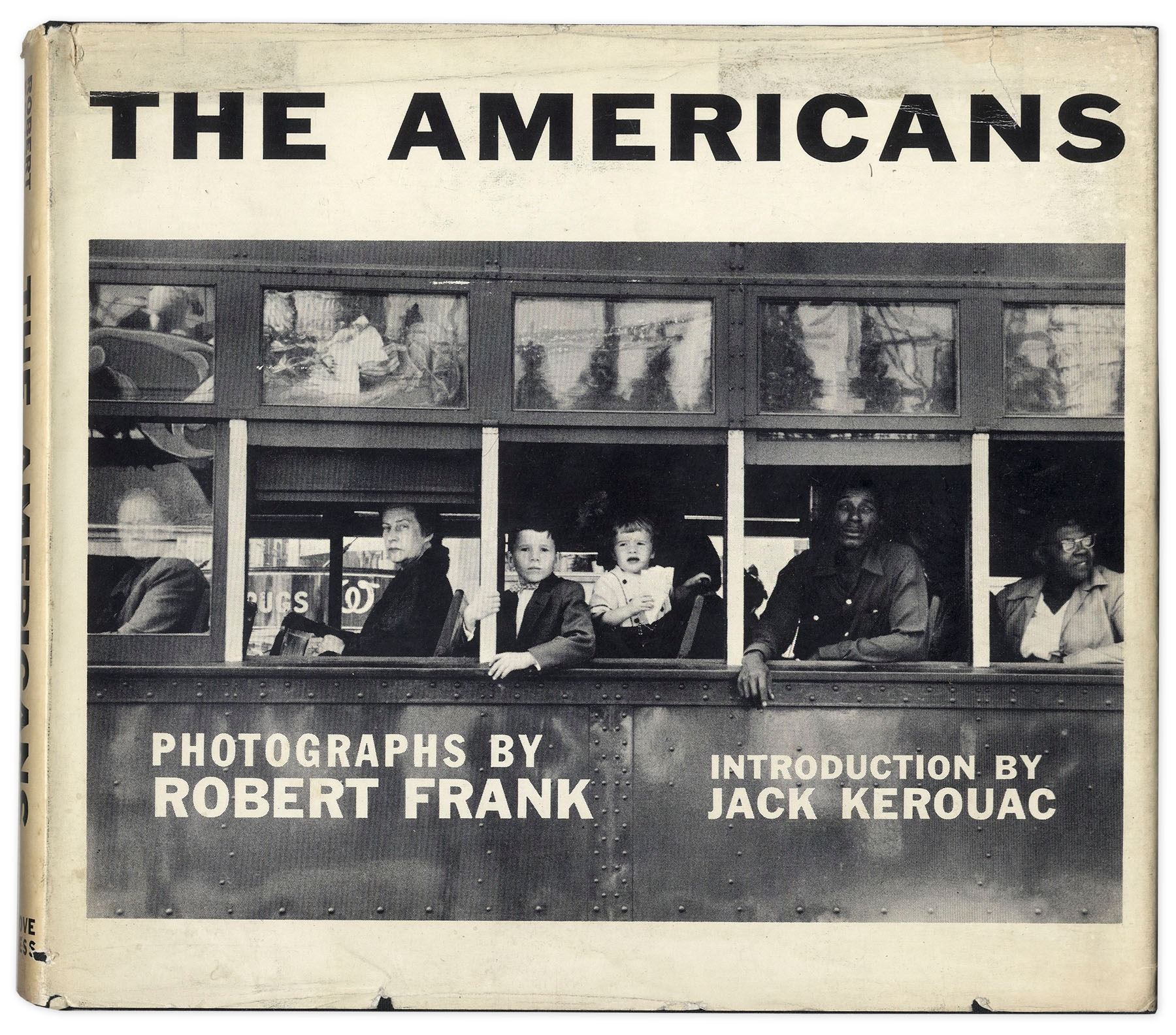 Rare first U.S. edition of ''The Americans'' by Robert Frank, in its original dust jacket. New York: Grove Press, 1959. Considered a landmark in American photography, ''The Americans'' features 84 of Frank's iconic black and white photographs, which Jack Kerouac describes as having ''agility, mystery, genius, sadness and strange secrecy of a shadow ''. In 1955-56 the European-born Frank traveled across the United States to study and capture the country's people and culture, capturing images from various cultures and socioeconomic levels. Unable to secure an American publisher, Frank's work was initially published in France by Robert Delpire in 1958, and then by Grove Press in 1959 once Kerouac agreed to write the introduction after meeting Frank on a sidewalk and seeing his photographs. The images continue to resonate, beginning with the dust jacket where a segregated bus shows, from front to back, a white man, white woman, white children and then two black men, giving disparate looks to the camera. Bound in black cloth boards with dramatic and bold gilt lettering to spine. Dust jacket (showing $7.50 price) is lightly chipped with tape repair to verso of front cover; overall very good condition. Previous owner's stamp and signature to front free endpaper, otherwise book is near fine.