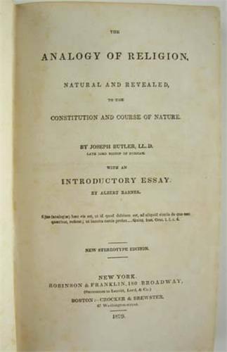 The Analogy of Religion, by Joseph Butler, New Stereotype Edition, published by Robinson and Franklin of New York, 1839, Condition: Good - cover wear, no dust jacket