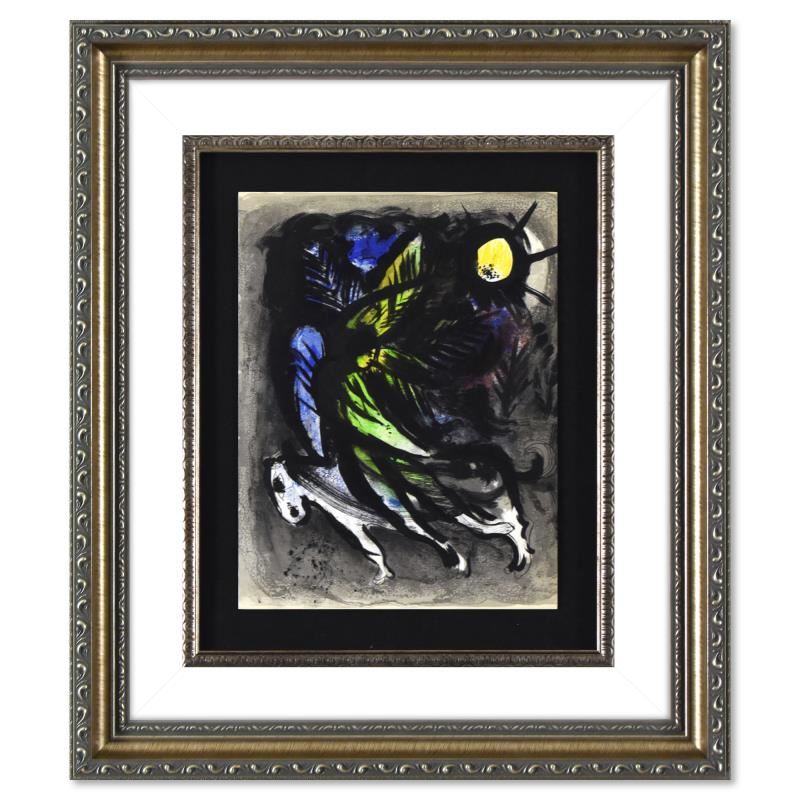 The Angel by Chagall (1887-1985). Please see photos and description for all available information. "The Angel" is a lithograph on paper by Marc Chagall (1887-1985). This piece comes framed. Includes Letter of Authenticity. Measures approx. 20" x 23" (frame), 9.5" x 12.5" (image).