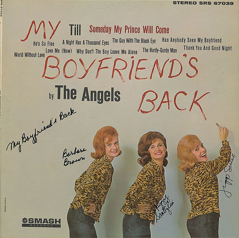 My Boyfriend’s Back album signed on the front cover in black felt tip, “My Boyfriend’s Back, Barbara Brown,” “Peggy Santiglia,” and “Phyllis Sirico.” In fine condition, with a surface wrinkle to the right edge. The record is included.