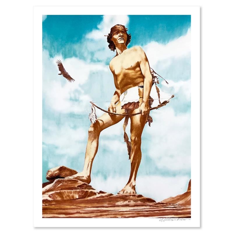The Archer by Nelson, William. "The Archer" is a limited edition lithograph on paper, numbered and hand signed by William Nelson. Includes Letter of Authenticity. Measures approx. 25" x 35.5" (border), 22" x 29" (image). There may be minor imperfections i