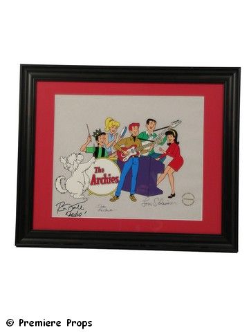 Hand painted Limited Edition Animation Cell-* from Cartoon Series "The Archie's" singed Lou Scheimer. Producer, Dan DeCarlo, Artist, and Ron Dante who was the voice of "Archie" and also played most of the instruments. Includes official Lou Scheimer Production Seal. This is the Artist Proof (#25 of 25) Approx. 19x23.Oversized item. Additional Postage Required.