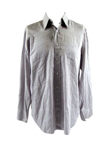 From Director David Dwohy's The Arrival (1996) is Zane Zaminsky's (Charlie Sheen) screen used light grey thin red striped long sleeve button 'Beverly Shirt Co' distressed shirt. The initials "CS" are written on the inside of the collar of the shirt.