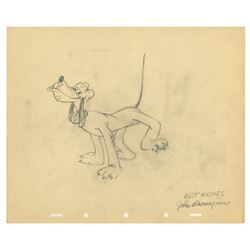 (Walt Disney Studios, c.1980) An original drawing by John Basmajian of Pluto. In 1945, Basmajian became the assistant animator to George Kreisl for th