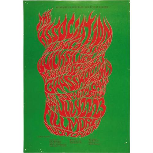 <B>The Association Fillmore Auditorium Concert Poster, BG-18 (Bill Graham, 1966).</B></I> First-printing copies of this otherwise common poster don't seem to make it our way often, but here's an authentic original edition. Joining the "Along Comes Mary" Association for this early Bill Graham show were Quicksilver Messenger Service, with the Grass Roots and Sopwith Camel alternating on the weekends. The poster measures approximately 14" x 20", and is in VG condition with numerous tack holes.<BR><BR><b>Shipping:</b> Flat Material, Large (<a target="_blank" href="http://www.heritageauctions.com/common/shipping.php">view shipping information</a>)