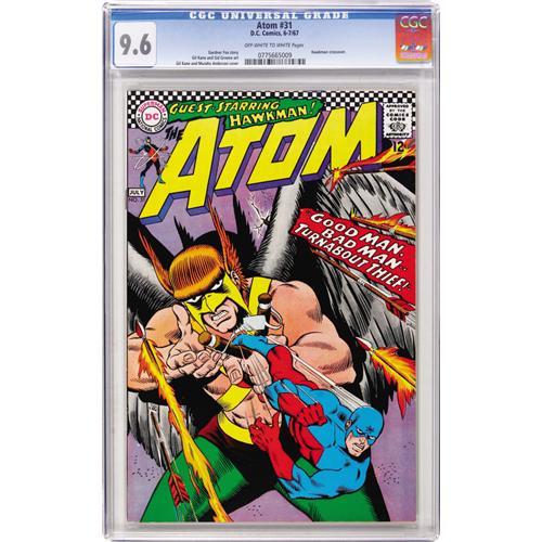 <B>The Atom #31 (DC, 1967) CGC NM+ 9.6 Off-white to white pages.</B></I> Hawkman guest-stars. Gil Kane cover and art. Overstreet 2006 NM- 9.2 value = $75. CGC census 3/07: 2 in 9.6, 1 higher.<BR><BR><b>Shipping:</b> Comics - Slabbed (certified) (<a target="_blank" href="http://www.heritageauctions.com/common/shipping.php">view shipping information</a>)