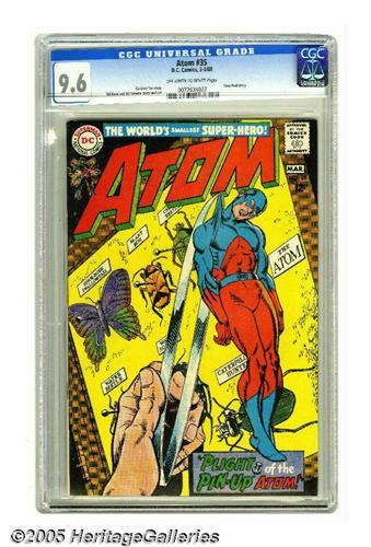 <B>The Atom #35 (DC, 1968) CGC NM+ 9.6 Off-white to white pages.</B></I> Gil Kane cover and art. Time Pool story. Overstreet 2005 NM- 9.2 value = $70. CGC census 2/05: 1 in 9.6, none higher.