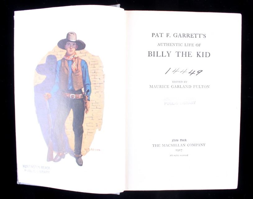 This is a scarce first edition of "The Authentic Life of Billy the Kid, the Noted Desperado" by Pat F. Garrett and published in 1927. The book is an exciting historical account of the life of Henry McCarty, AKA William H. Bonney, AKA "Billy the Kid". McCarty spent most of his adult life as a fugitive outlaw who is known to have killed eight men before being killed by Lincoln County Sheriff, Pat Garrett, on July 14, 1881. The book contains many photos, maps, and illustrations. It shows good condition and measures 6" x 8.75".