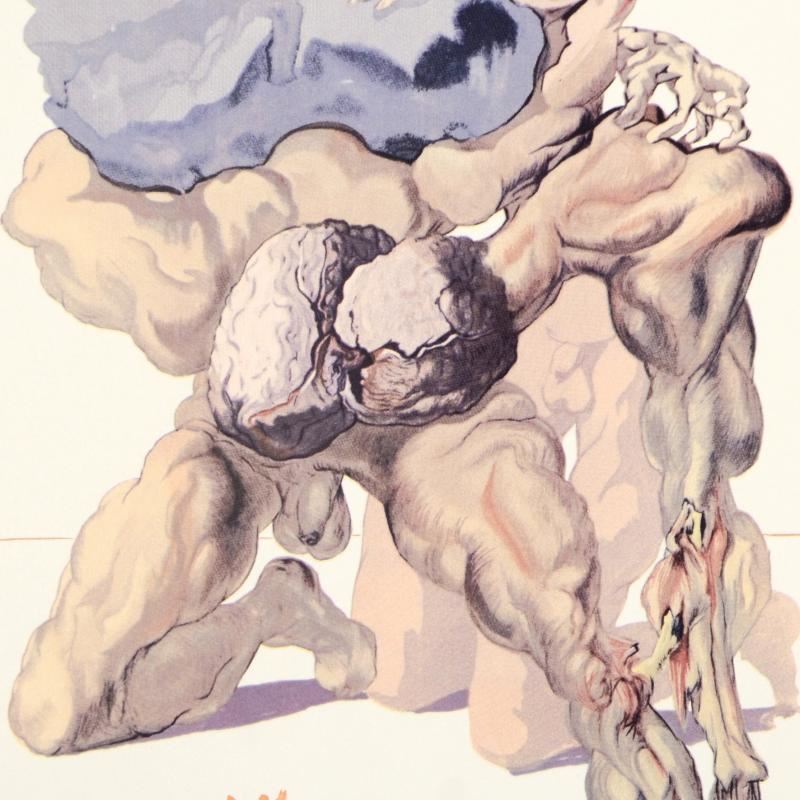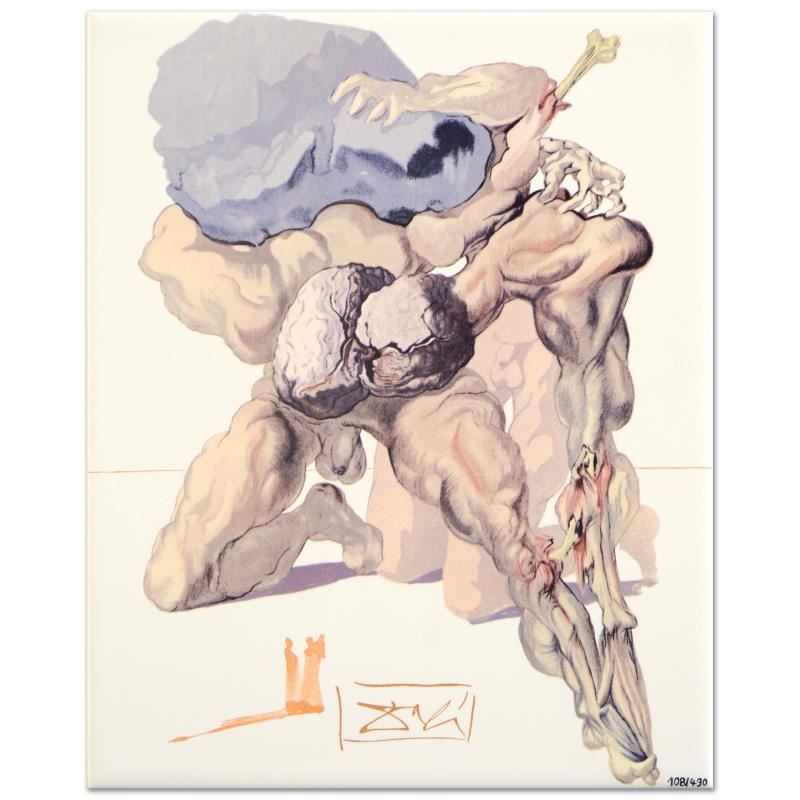 "The Avaricious and the Prodigal" is a limited edition glazed ceramic tile from a SOLD OUT edition by Salvador Dali (1904-1989), numbered and plate signed! This piece illustrates Dali's interpretation of canto 7 of "The Inferno", from the epic poem "The Divine Comedy". Measures approx. 8" x 10" (tile).