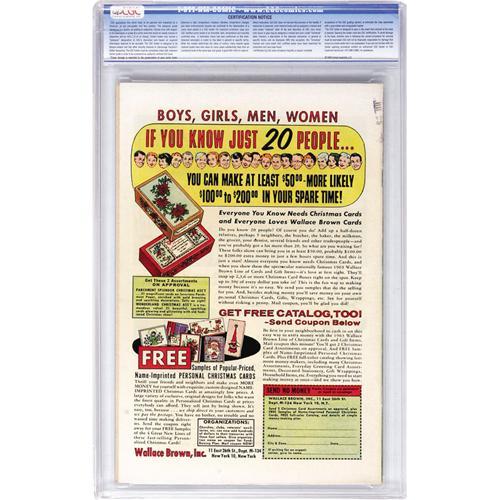 48C. COMICS – Comic books sold referencing a third-party grading service are sold "as is" without any express or implied warranty. Certain warranties may be available from the grading services and the Bidder is referred to them for further details: Comics Guaranty Corporation (CGC), P.O. Box 4738, Sarasota, FL 34230. Subject to sections 57 and 58, bidders who intend to challenge authenticity or provenance of a lot must notify Auctioneer in writing within thirty (30) days of the Auction's conclusion. Auctioneer's maximum liability shall not exceed the high bid on that lot, which bid shall be deemed for all purposes the value of the lot. In the event Auctioneer cannot deliver the lot or subsequently it is established that the lot lacks title, provenance, authenticity, or other transfer or condition issue is claimed, Auctioneer's liability shall be limited to recission of sale and refund of purchase price. After one year has elapsed, Auctioneer's maximum liability shall be limited to any commissions and fees Auctioneer earned on that lot.