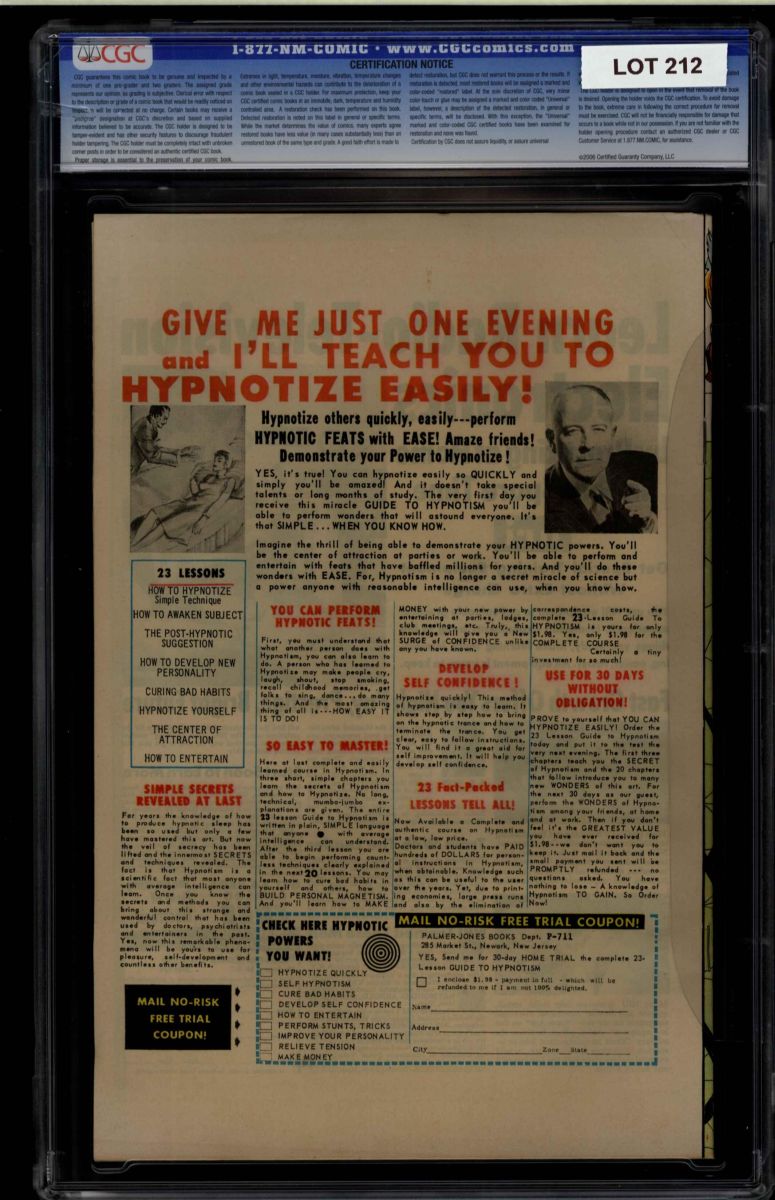 The Auctioneer has reserved the right to reject any and all bids, and to bid at the auction. Auctioneers Auctions are not on approval. Auctioneer does not allow certified material to be returned because of possible differences of opinion with respect to the grade offered by any third party organization, dealer, or service. Absolutely no guarantee of grade is offered for un-certified property sold and subsequently submitted to a third-party grading service. There will be no exceptions to this policy. Under extremely limited circumstances, (e.g. gross cataloging error) a purchaser, who did not bid from the floor, may request Auctioneer to evaluate voiding a sale; such request must be made in writing detailing the alleged gross error, and submission of the lot to the Auctioneer must be pre-approved by the Auctioneer. Bidder must notify Auctioneer in writing of such request within three (3) days of the non-floor bidder receipt of the lot. Any lot that is to be evaluated must be in our offices within 30 days after Auction. Grading does not qualify for this evaluation process nor do such complaints constitute a basis to challenge the authenticity of a lot. AFTER THAT 30-DAY PERIOD, NO LOTS MAY BE RETURNED FOR REASONS OTHER THAN AUTHENTICITY. Lots returned must be housed intact in the original holder. No lots purchased by floor Bidders may be returned (including those Bidders acting as agents for others). Late remittance for purchases may be considered just cause to revoke all return privileges. B: Auctions conducted solely on the Internet have a THREE (3) DAY RETURN POLICY: Lots paid for within seven days of the Auction closing are sold with a three (3) day return privilege. You may return lots under the following conditions: Within three days of receipt of the lot, you must first notify Auctioneer by contacting Client Service by phone (314-680-8599) or e-mail (moundcityauctions@gmail.com), and immediately mail the lot(s) fully insured to the attention of Returns, Mound City Auctions 1081 Teson Rd. Hazelwood, MO. 63042. Lots must be housed intact in their original holder and in their original condition. You are responsible for the insured, safe delivery of any lots. Auctioneer will not be responsible for lots returned in non-registered mail or lots returned without prior authorization per section B. A non-negotiable return fee of 5% of the purchase price ($10 per lot minimum) will be deducted from the refund for each returned lot or billed directly. Postage and handling fees are not refunded. After the three-day period (from receipt), no items may be returned for any reason. Late remittance for purchases revokes all Return-Restock privileges. C: Bidders who have inspected the lots prior to the auction will not be granted any return privileges. D: Comic books sold referencing a third-party grading service are sold “as is” without any express or implied warranty. Certain warranties may be available from the grading services and the Bidder is referred to them for further details: Certified Guaranty Company, LLC. (CGC), P.O. Box 4738, Sarasota, FL 34230. E: Bidders who intend to challenge authenticity or provenance of a lot must notify Auctioneer in writing within thirty (30) days of the Auctions conclusion. In the event Auctioneer cannot deliver the lot or subsequently it is established that the lot lacks title, provenance, authenticity, or other transfer or condition issue is claimed, Auctioneer's liability shall be limited to rescission of sale and refund of purchase price; in no case shall Auctioneer's maximum liability exceed the high bid on that lot, which bid shall be deemed for all purposes the value of the lot. After one year has elapsed, Auctioneer's maximum liability shall be limited to any commissions and fees Auctioneer earned on that lot. F: All comics are guaranteed genuine, but are not guaranteed as to grade, since grading is a matter of opinion, an art and not a science, and therefore the opinion rendered by the Auctioneer or any third party grading service may not agree with the opinion of others (including trained experts), and the same expert may not grade the same item with the same grade at two different times. G: Since we cannot examine encapsulated comics, they are sold “as is”without our grading opinion, and may not be returned for any reason. Auctioneer shall not be liable for any patent or latent defect or controversy pertaining to or arising from any encapsulated collectible. In any such instance, purchaser's remedy, if any, shall be solely against the service certifying the collectible. H: Due to changing grading standards over time, differing interpretations, and to possible mishandling of items by subsequent owners, Auctioneer reserves the right to grade items differently than shown on certificates from any grading service that accompany the items. Auctioneer also reserves the right to grade items differently than the grades shown in the prior catalog should such items be reconsigned to any future auction. I: Although consensus grading is employed by most grading services, it should be noted as aforesaid that grading is not an exact science. In fact, it is entirely possible that if a lot is broken out of a plastic holder and resubmitted to another grading service or even to the same service, the lot could come back with a different grade assigned. J: Certification does not guarantee protection against the normal risks associated with potentially volatile markets. The degree of liquidity for certified collectibles will vary according to general market conditions and the particular lot involved. For some lots there may be no active market at all at certain points in time."