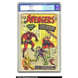 The Avengers #2 (Marvel, 1963) CGC FN+ 6.5 Off-white pages. This second issue has the Avengers teaming up against the Space Phantom, posing as the Hulk on this Jack Kirby cover. Featuring deep colors and a sharp spine, the cover has light soiling, and there are a few creases to the back cover, hence the FN+ grade. Overstreet 2002 FN 6.0 value = $165. Important notice: We expect to be auctioning lots at the rate of 200-250 per hour. Sometimes eBay Premier live bid software cannot keep up with that pace, so we strongly recommend that you place a realistic proxy bid now as insurance to avoid disappointment. Also please note that all Heritage/CAA lots purchased through eBay Premier carry a 20% Buyer's Premium. Please make sure you read the Terms and Conditions.
