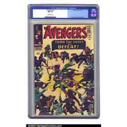 The Avengers #24 (Marvel, 1966) CGC NM 9.4 Off-white pages. Stupendous Kirby cover shown off by a near-perfect copy. Don Heck interior art. Overstreet 2002 NM 9.4 value = $60. Important notice: We expect to be auctioning lots at the rate of 200-250 per hour. Sometimes eBay Premier live bid software cannot keep up with that pace, so we strongly recommend that you place a realistic proxy bid now as insurance to avoid disappointment. Also please note that all Heritage/CAA lots purchased through eBay Premier carry a 20% Buyer's Premium. Please make sure you read the Terms and Conditions.