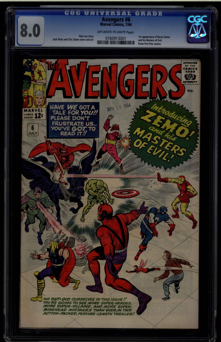 The Avengers #6 CGC 8.0 off-white to white pages. Stan Lee story
