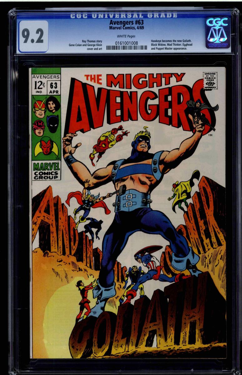 The Avengers #63 CGC 9.2 white pages. Roy Thomas story