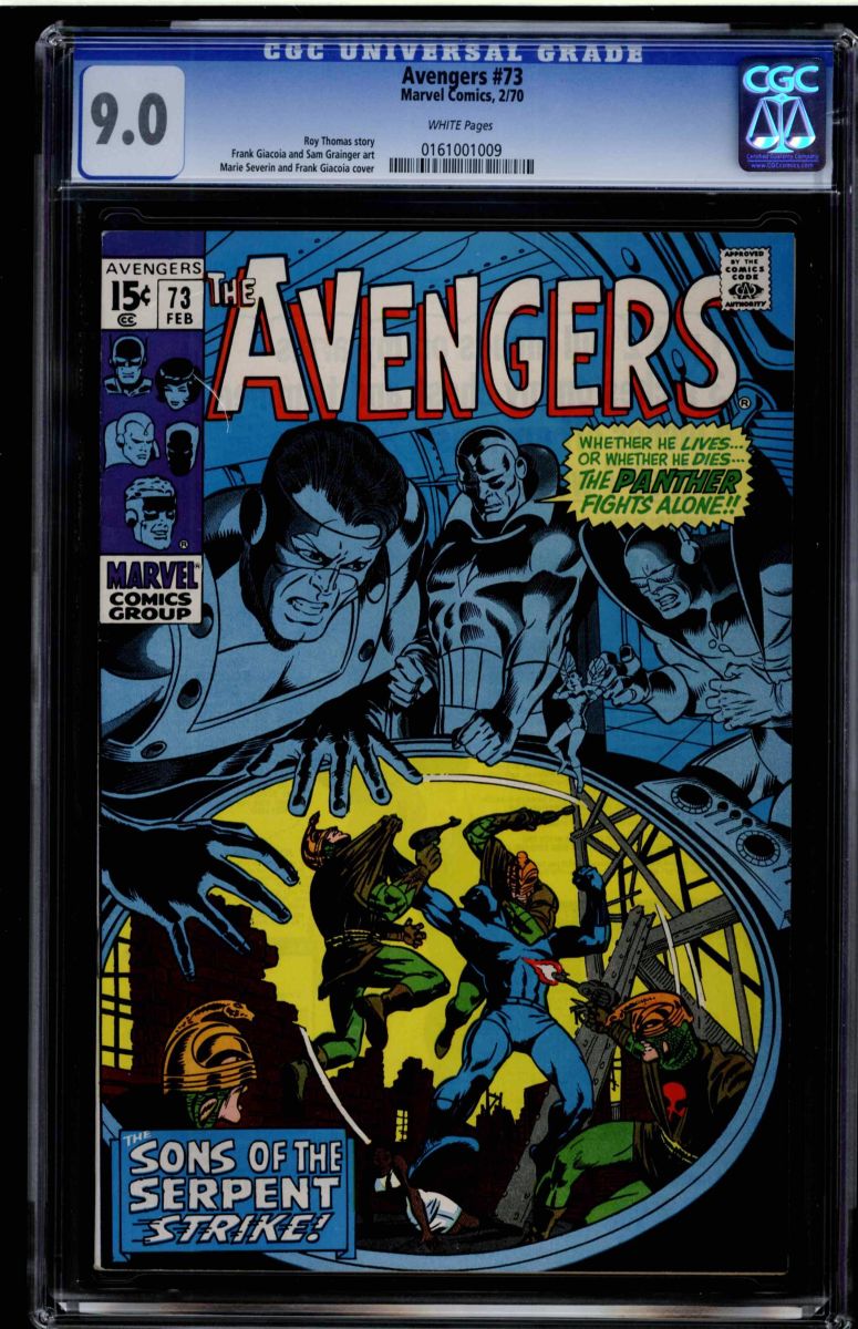 The Avengers #73 CGC 9.0 white pages. Roy Thomas story