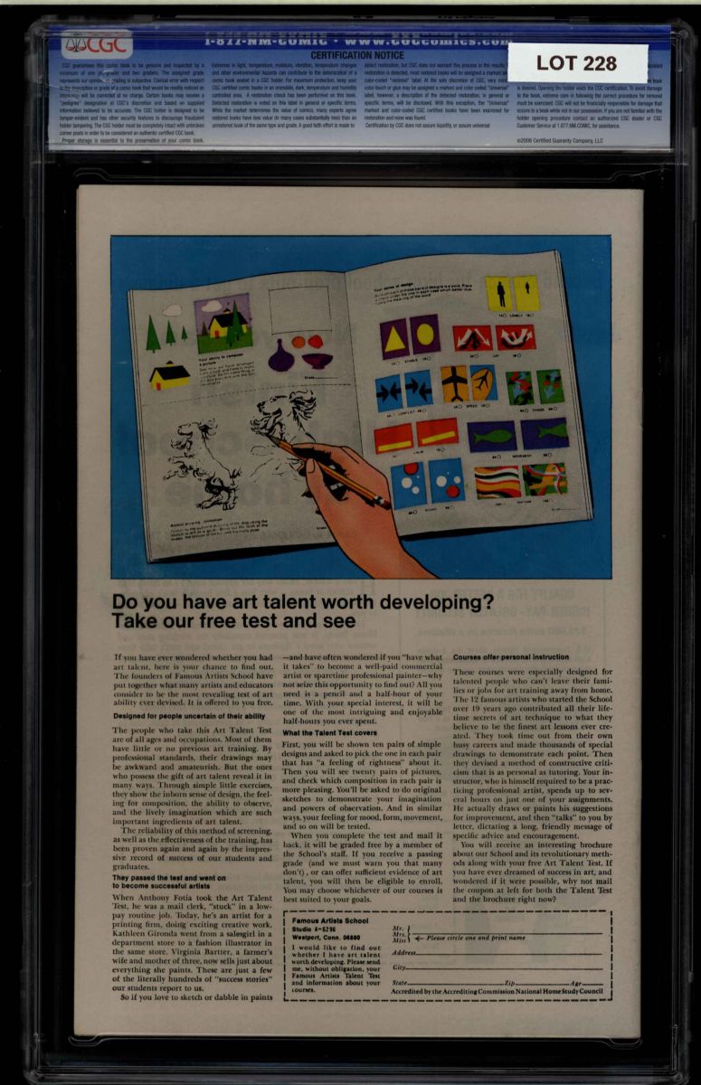 Frank Giacoia and Sam Grainger art, Marie Severin and Frank Giacoia cover. Overstreet 2009 VF/NM 9.0 value = $44. CGC census: 7 at 9.0, 27 higher.