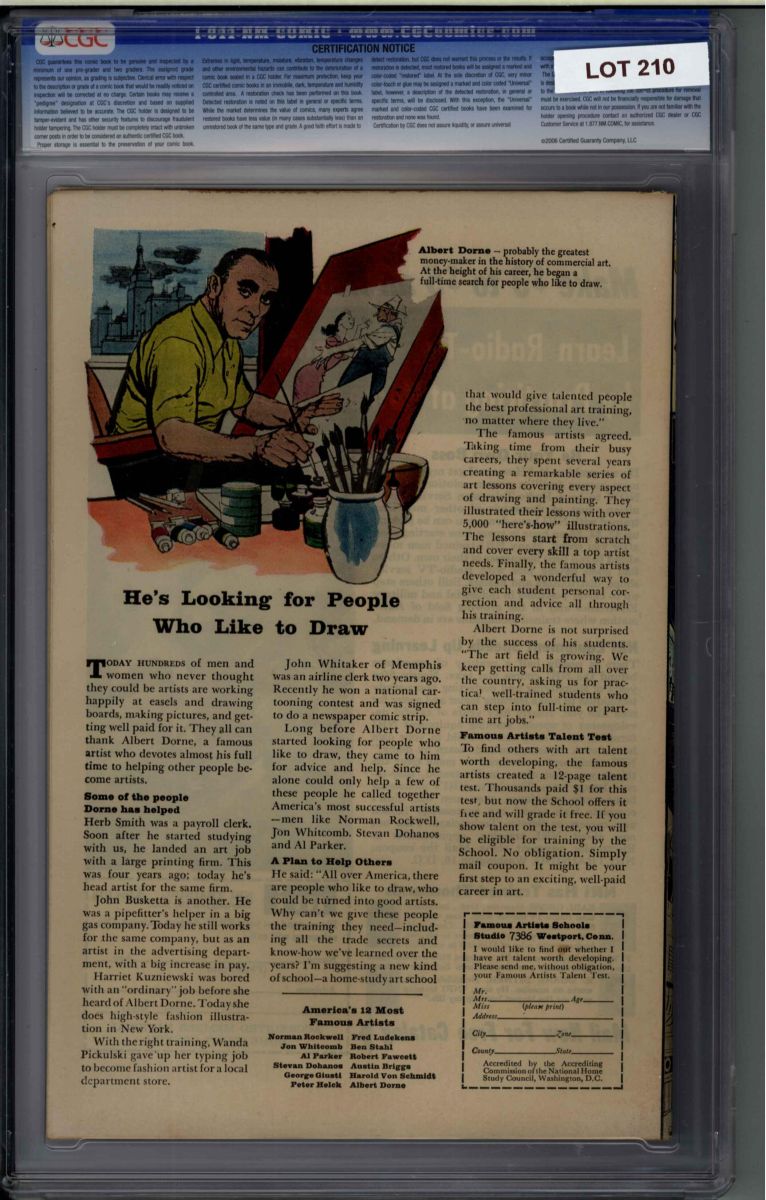 The Auctioneer has reserved the right to reject any and all bids, and to bid at the auction. Auctioneers Auctions are not on approval. Auctioneer does not allow certified material to be returned because of possible differences of opinion with respect to the grade offered by any third party organization, dealer, or service. Absolutely no guarantee of grade is offered for un-certified property sold and subsequently submitted to a third-party grading service. There will be no exceptions to this policy. Under extremely limited circumstances, (e.g. gross cataloging error) a purchaser, who did not bid from the floor, may request Auctioneer to evaluate voiding a sale; such request must be made in writing detailing the alleged gross error, and submission of the lot to the Auctioneer must be pre-approved by the Auctioneer. Bidder must notify Auctioneer in writing of such request within three (3) days of the non-floor bidder receipt of the lot. Any lot that is to be evaluated must be in our offices within 30 days after Auction. Grading does not qualify for this evaluation process nor do such complaints constitute a basis to challenge the authenticity of a lot. AFTER THAT 30-DAY PERIOD, NO LOTS MAY BE RETURNED FOR REASONS OTHER THAN AUTHENTICITY. Lots returned must be housed intact in the original holder. No lots purchased by floor Bidders may be returned (including those Bidders acting as agents for others). Late remittance for purchases may be considered just cause to revoke all return privileges. B: Auctions conducted solely on the Internet have a THREE (3) DAY RETURN POLICY: Lots paid for within seven days of the Auction closing are sold with a three (3) day return privilege. You may return lots under the following conditions: Within three days of receipt of the lot, you must first notify Auctioneer by contacting Client Service by phone (314-680-8599) or e-mail (moundcityauctions@gmail.com), and immediately mail the lot(s) fully insured to the attention of Returns, Mound City Auctions 1081 Teson Rd. Hazelwood, MO. 63042. Lots must be housed intact in their original holder and in their original condition. You are responsible for the insured, safe delivery of any lots. Auctioneer will not be responsible for lots returned in non-registered mail or lots returned without prior authorization per section B. A non-negotiable return fee of 5% of the purchase price ($10 per lot minimum) will be deducted from the refund for each returned lot or billed directly. Postage and handling fees are not refunded. After the three-day period (from receipt), no items may be returned for any reason. Late remittance for purchases revokes all Return-Restock privileges. C: Bidders who have inspected the lots prior to the auction will not be granted any return privileges. D: Comic books sold referencing a third-party grading service are sold “as is” without any express or implied warranty. Certain warranties may be available from the grading services and the Bidder is referred to them for further details: Certified Guaranty Company, LLC. (CGC), P.O. Box 4738, Sarasota, FL 34230. E: Bidders who intend to challenge authenticity or provenance of a lot must notify Auctioneer in writing within thirty (30) days of the Auctions conclusion. In the event Auctioneer cannot deliver the lot or subsequently it is established that the lot lacks title, provenance, authenticity, or other transfer or condition issue is claimed, Auctioneer's liability shall be limited to rescission of sale and refund of purchase price; in no case shall Auctioneer's maximum liability exceed the high bid on that lot, which bid shall be deemed for all purposes the value of the lot. After one year has elapsed, Auctioneer's maximum liability shall be limited to any commissions and fees Auctioneer earned on that lot. F: All comics are guaranteed genuine, but are not guaranteed as to grade, since grading is a matter of opinion, an art and not a science, and therefore the opinion rendered by the Auctioneer or any third party grading service may not agree with the opinion of others (including trained experts), and the same expert may not grade the same item with the same grade at two different times. G: Since we cannot examine encapsulated comics, they are sold “as is”without our grading opinion, and may not be returned for any reason. Auctioneer shall not be liable for any patent or latent defect or controversy pertaining to or arising from any encapsulated collectible. In any such instance, purchaser's remedy, if any, shall be solely against the service certifying the collectible. H: Due to changing grading standards over time, differing interpretations, and to possible mishandling of items by subsequent owners, Auctioneer reserves the right to grade items differently than shown on certificates from any grading service that accompany the items. Auctioneer also reserves the right to grade items differently than the grades shown in the prior catalog should such items be reconsigned to any future auction. I: Although consensus grading is employed by most grading services, it should be noted as aforesaid that grading is not an exact science. In fact, it is entirely possible that if a lot is broken out of a plastic holder and resubmitted to another grading service or even to the same service, the lot could come back with a different grade assigned. J: Certification does not guarantee protection against the normal risks associated with potentially volatile markets. The degree of liquidity for certified collectibles will vary according to general market conditions and the particular lot involved. For some lots there may be no active market at all at certain points in time."