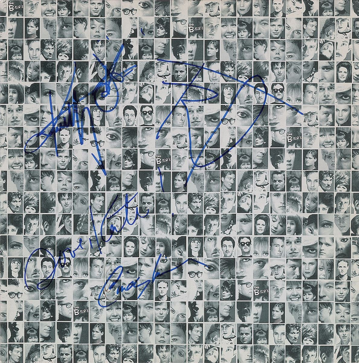 Time Capsule album flat signed on the front in blue felt tip by Fred Schneider, Kate Pierson, Cindy Wilson, and Keith Strickland. In fine condition. The record is not included. Consignor notes that the signatures were obtained in person before a concert at the House of Blues in Cleveland, Ohio.