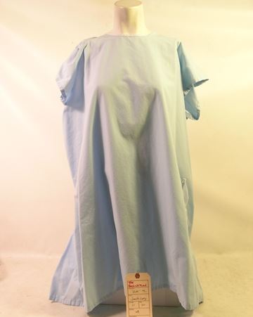 Zoe's (Jennifer Lopez) screen worn, hero, light blue with white accents and white tie in the back, hospital gown. (no size) Includes wardrobe tag!