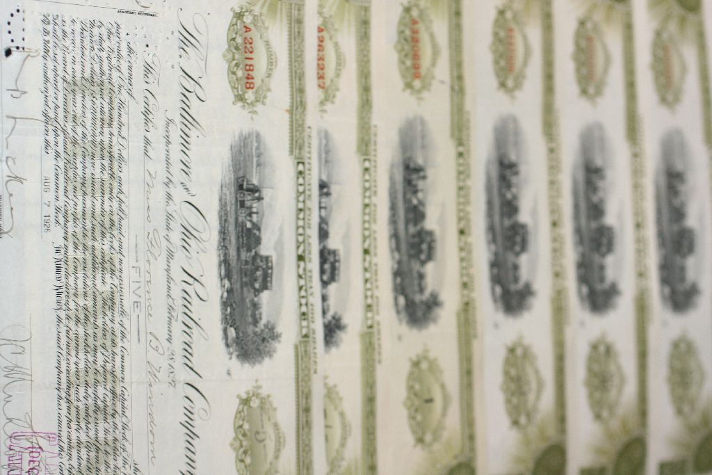 The Baltimore and Ohio Railroad Co. Stock Certificate Dated 1926, 1927, 1929, 1934 & 1938 (2); Lot o