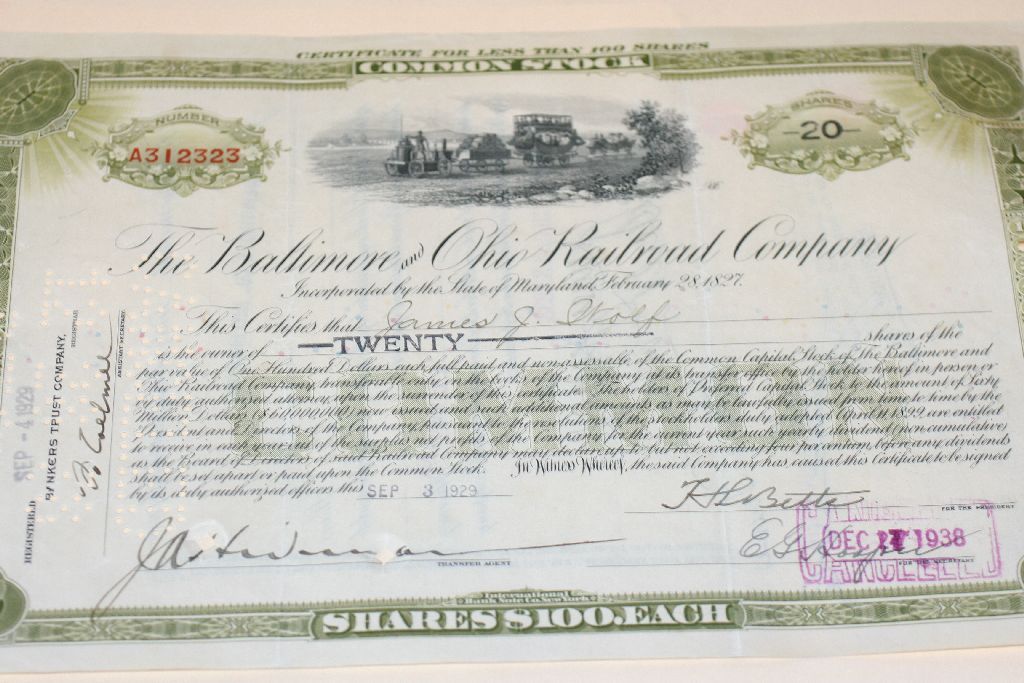 The Baltimore and Ohio Railroad Co. Stock Certificate Dated 1929