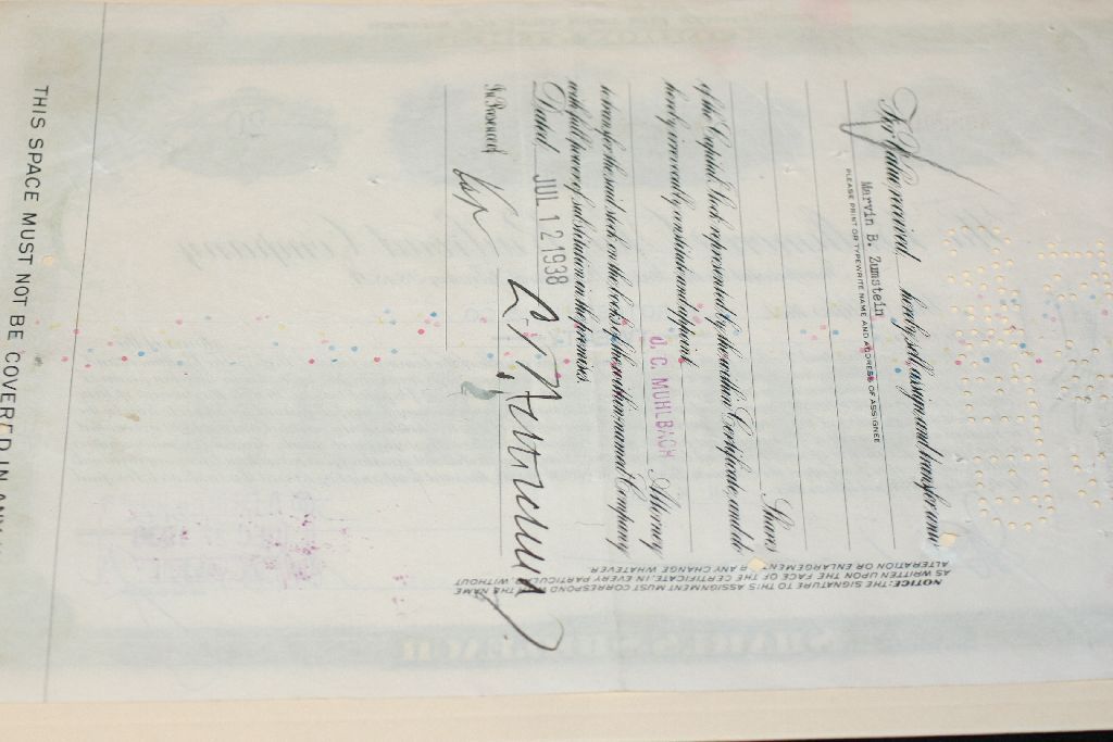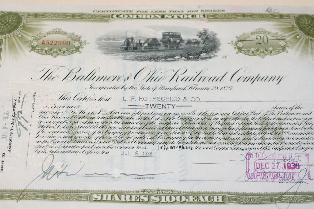 The Baltimore and Ohio Railroad Co. Stock Certificate Dated 1938