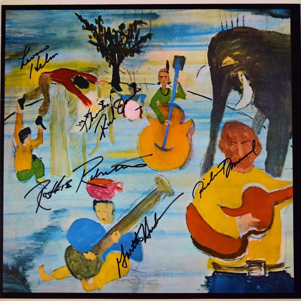 The Band 1968 Music From Big Pink album. Signed: Garth Hudson, Richard Manuel, Levon Helm, Thanks! Rick Danko & Robbie Robertson.