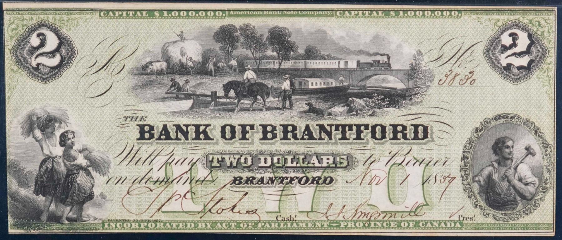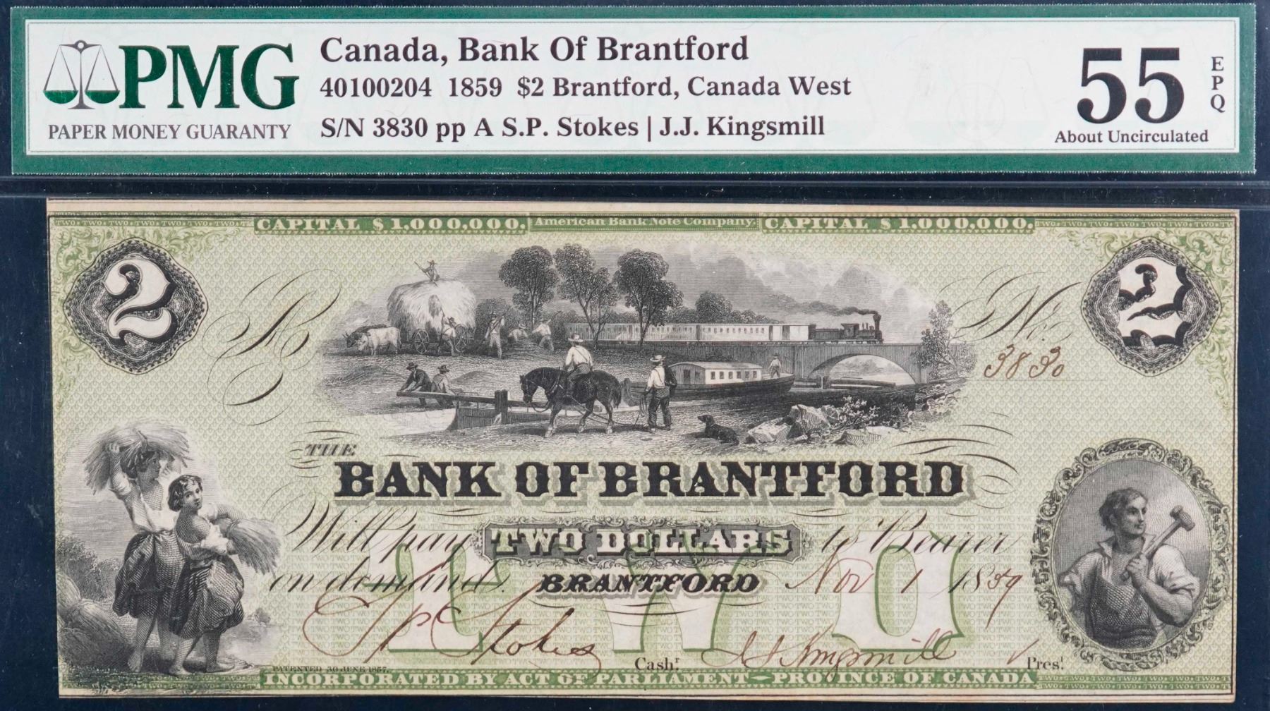 The Bank of Brantford 1859 $2 #3830 CH-40-10-02-04 PMG Choice About Uncirculated-55 EPQ