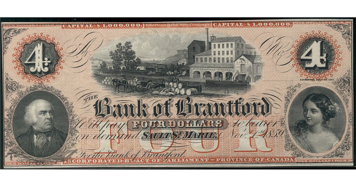 The Bank of Brantford; 1859 $4 Remainder. Nice UNC issue.