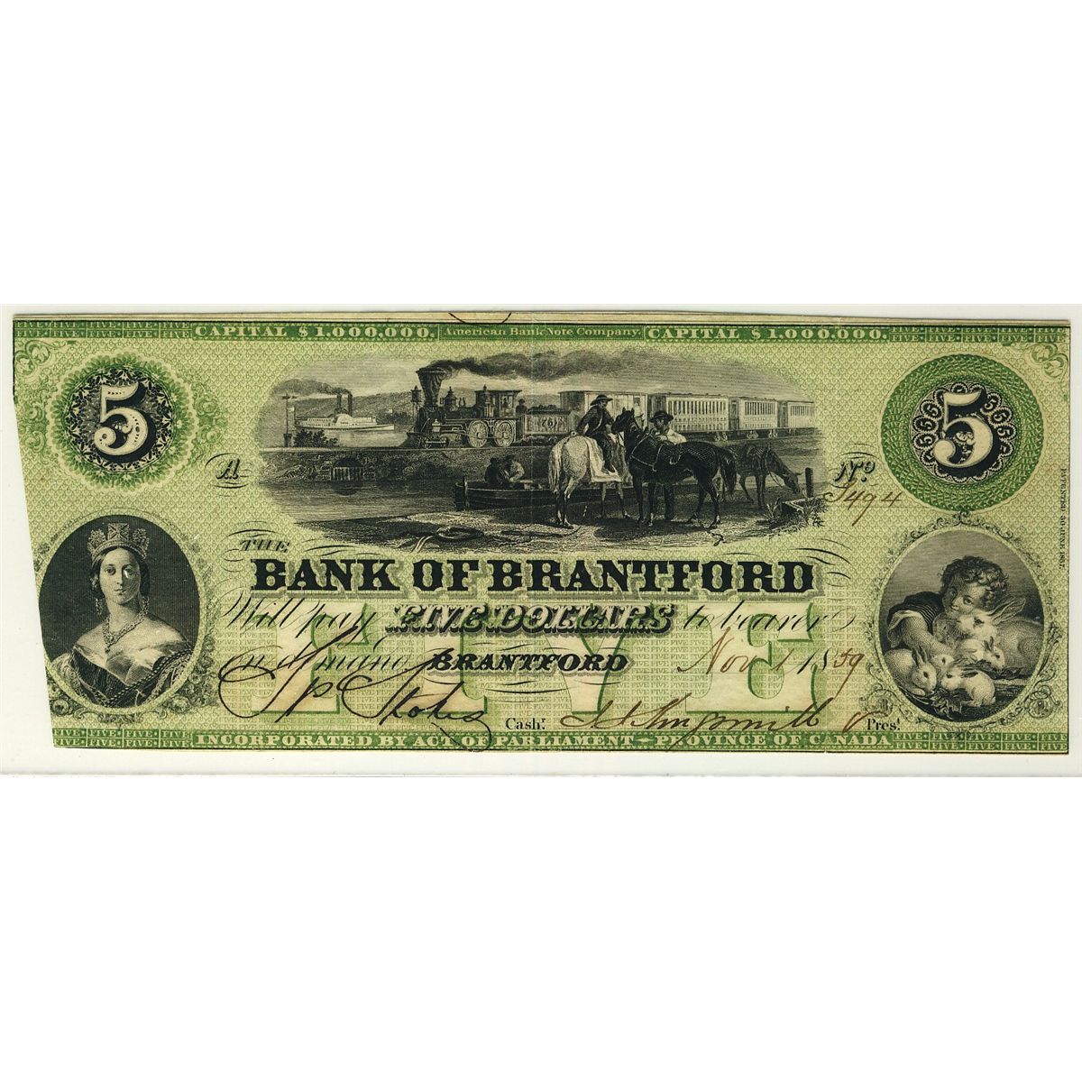 The Bank of Brantford 1859 $5 #3494 CH-40-10-02-08a PCGS VF30 App