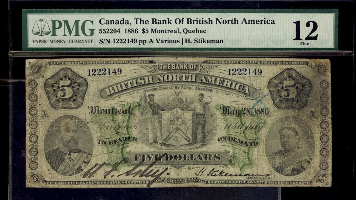 The Bank of British North America 1886 $5 #1222149 CH-55-22-04 PMG F12.