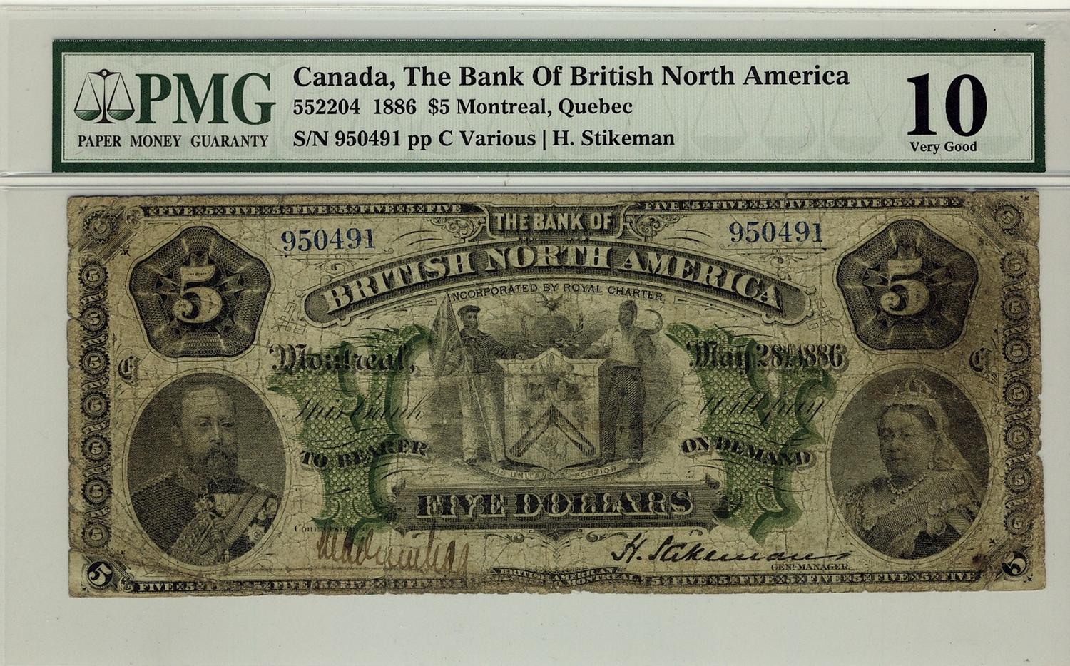 The Bank of British North America, 1886 $5 #950491, CH-5522-04 PMG VG10