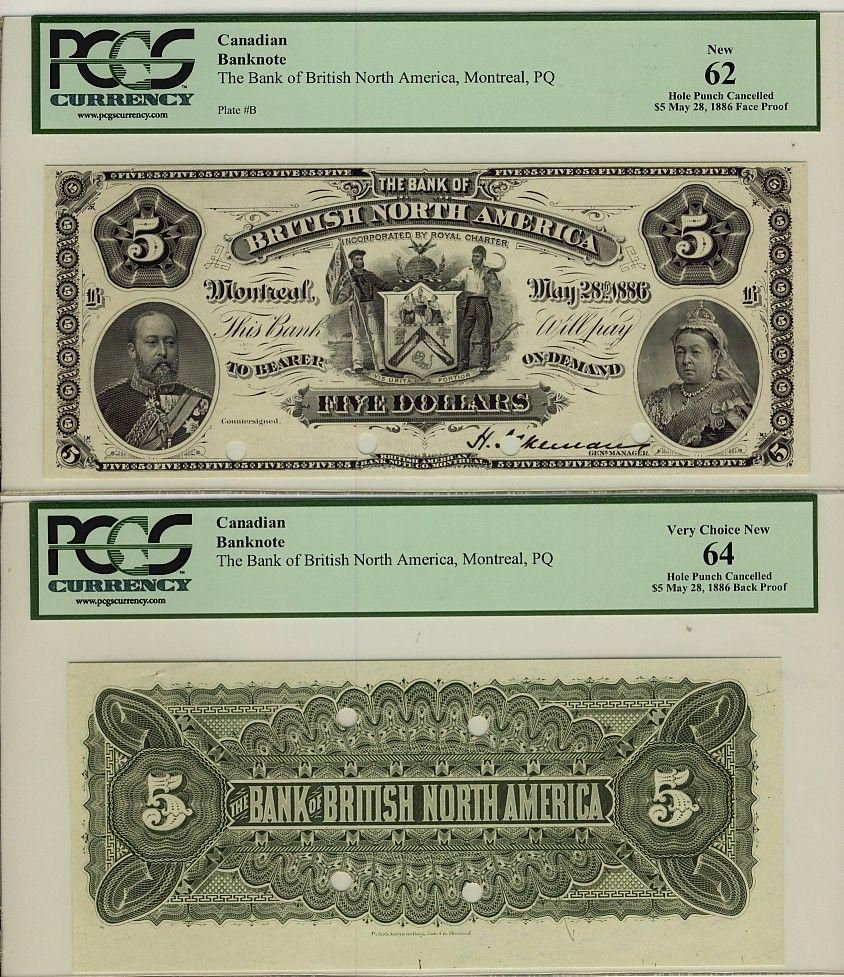 The Bank of British North America, 1886 $5, CH-55-22-02P, Face: PCGS UNC62 Back: PCGS UNC64