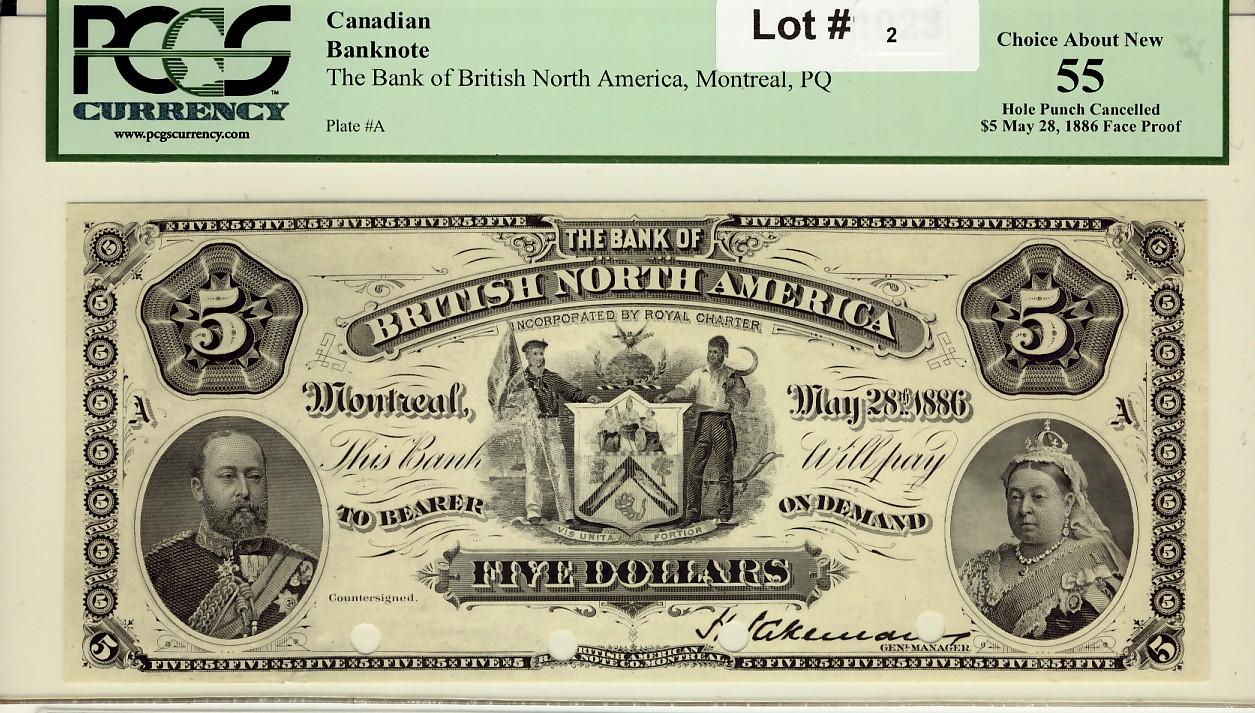 The Bank of British North America 1886 $5 Face Proof CH-55-22-02P. PCGS AU55.