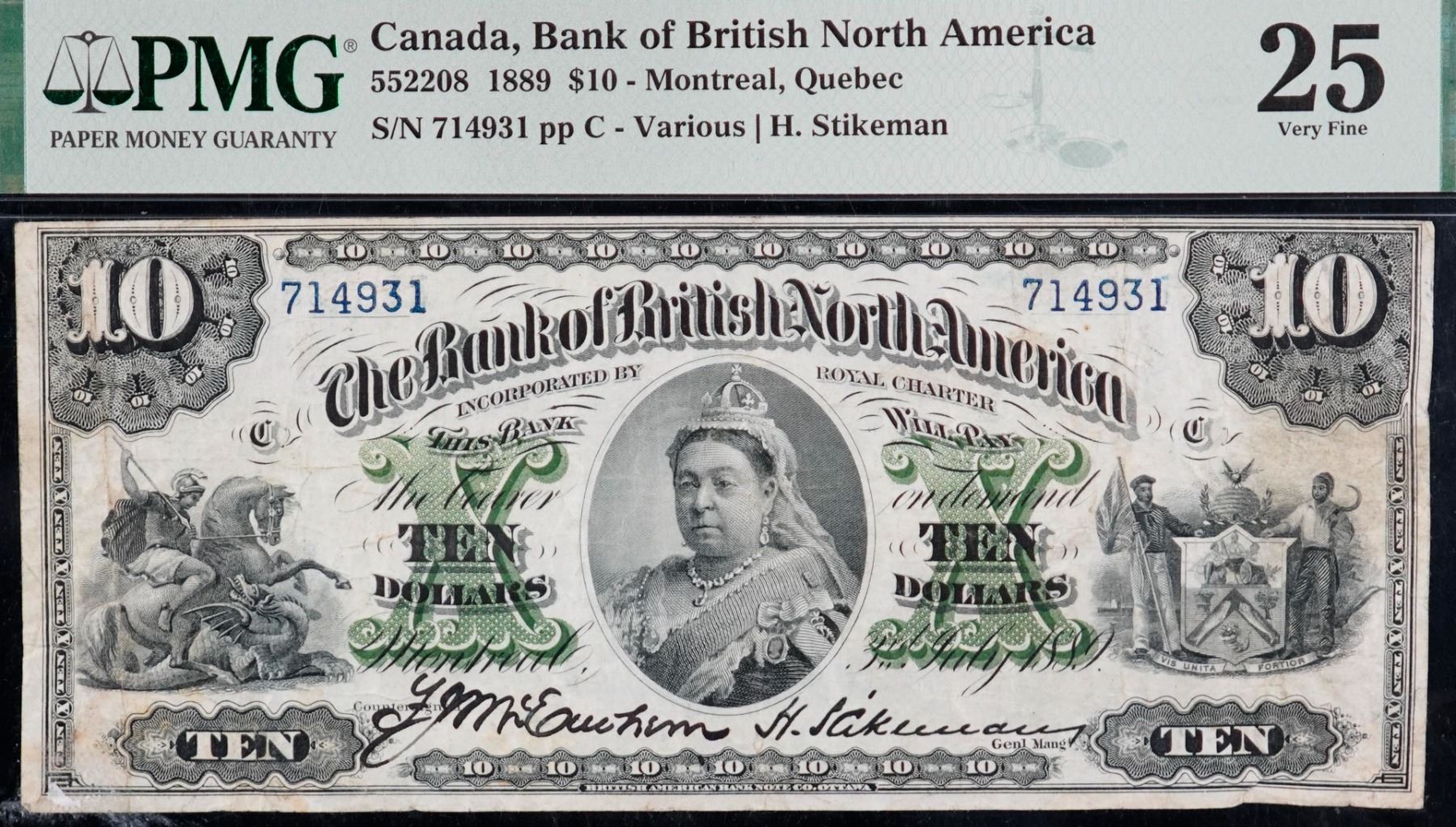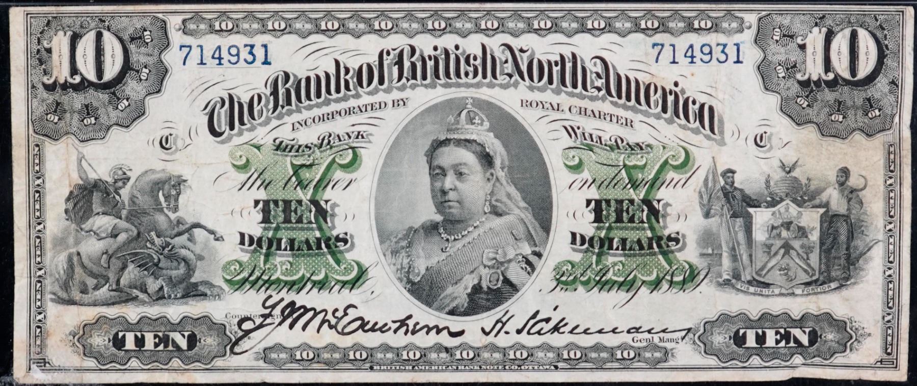 The Bank of British North America 1889 $10 #714931 CH-55-22-08 PMG Choice Very Fine-25. An ultra bright example with nice eye appeal.
