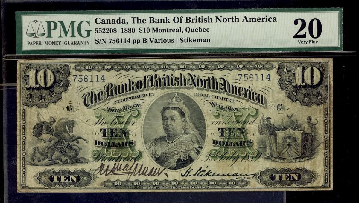 The Bank of British North America 1889 $10 #756114 CH-55-22-08 PMG VF20.