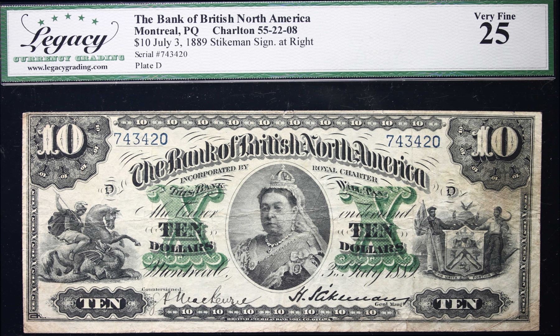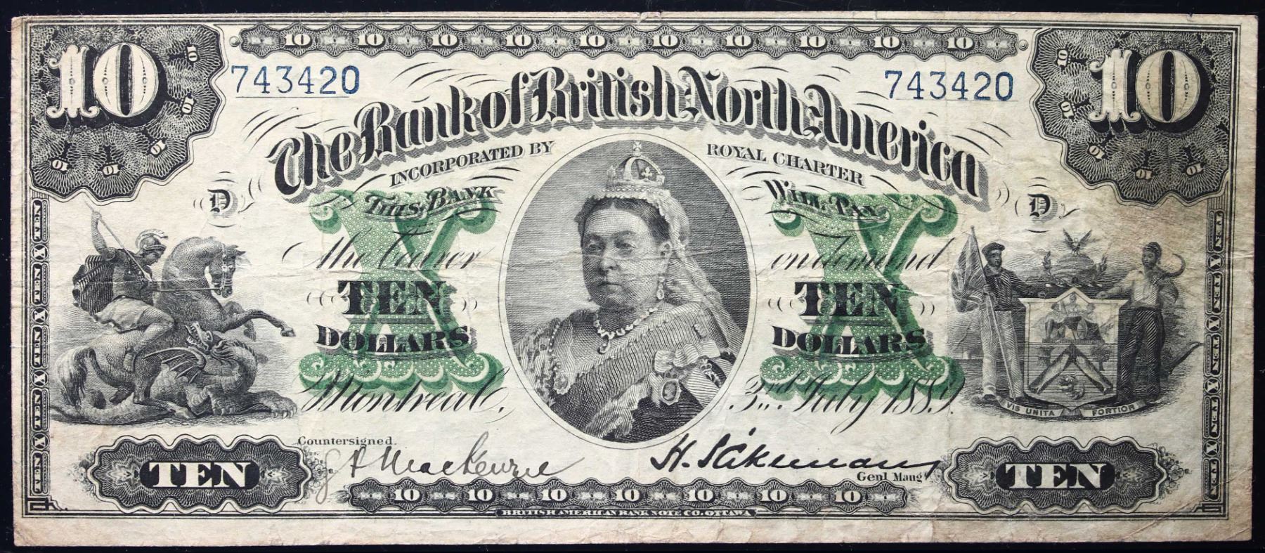 The Bank of British North America 1889 $10 CH-55-22-08 #743420 LCG Choice Very Fine-25